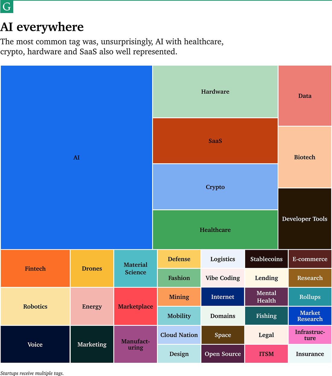 Join us now to unlock the full database and learn about 50 of the world’s highest-potential startups. TakeawaysKey themesThough there is incredible variety among the awardees, a few key themes came to the fore. Pay attention to AI’s impact on traditional businesses, the unslakeable thirst for data, creative governance models, and much more. Innovation from everywhereAs was the case last year, we discovered great companies worldwide. While America remains the undoubted epicenter of high-growth startups, we found exceptional teams operating in 12 different countries. We have awardees building incredible AI businesses in Brazil, high-performance drone systems in India, and elegant product software in Australia. The most common sector? AI.As you might expect, AI was everywhere from healthcare to defense to biotech to crypto to fashion. There’s no doubt that talented entrepreneurs are finding effective, original ways to leverage the technology to create net-new experiences, revitalize traditional industries, and unlock thorny problems. B2B > B2CNearly 75% of awardees operate B2B, while 18% are B2C. Despite that, the Future 50 includes intriguing new consumer experiences that might change how we shop, spend, and connect with AI companions. Lean teamsThough there were some outliers, most awardees operate with fewer than 50 full-time employees. While this is not entirely unusual given how young many of the startups are, it’s still striking to see how much traction companies can achieve with lean teams. On the other end of the spectrum, a few startups have built large operations but still have valuations under our threshold. That’s an indication of the differing labor costs around the world and how strong unit economics can allow a company to fund its own growth. This is just the start! There is much more to discover in the full piece and database. Our processThere are an infinite number of ways you might try to create a list like this one. You could collate it based on perceived status, hard metrics, personal opinion, or the opinion of ceremonial judges. We took a different approach, with a few key characteristics: